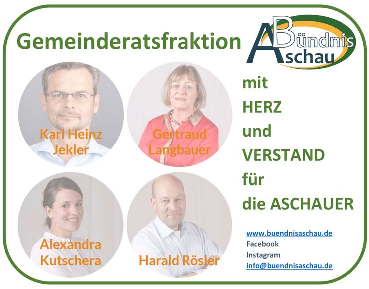 Wir freuen uns riesig über diese große Zustimmung! Wir haben uns 2019 gegründet um als unabhängiges Bündnis eine zukunftsfähige Ortsentwicklung für unser Aschau mit einer starken Bürgerbeteiligung zu erreichen. Wir haben in den vergangenen Monaten in unseren Veranstaltungen und Gesprächen deutlich gemacht wie wir arbeiten wollen: Mit euch, für euch. Mit Aschau, für Aschau. 4 von 16 Sitzen gingen bei der Gemeinderatswahl an BündnisAschau. Für uns mit dabei sind Gertraud Langbauer, Harald Rösler, Alexandra Kutschera